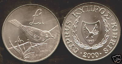 This is a 2000 1 Pound W.W.F. Skalifourta ( Oenanthe Cypriana - Cyprus Wheater ) coin struck to commemorate W.W.F in uncirculated condition. Price: Euro 35.00 |