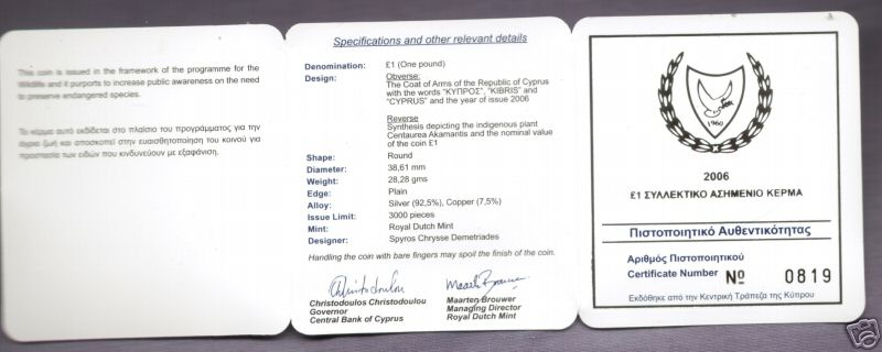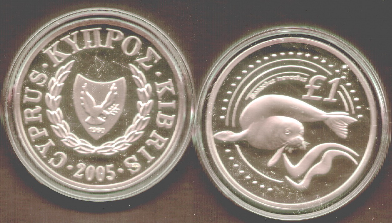 The 2005 Wildlife Preservation ( The Monachus Monachus endangered seal ) 1 Pound in B.Uncirculated condition. Price: Euro: 16.00 |
