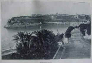 | AFLOAT AND ASHORE ON THE MEDITERRANEAN. by Lee Meriwether. 1892 First and only edition. It was published in New York by Scribner's Son. This is a 363 pages-22 chapters book with 24 off text full page black and white photos, and a map (route of author). The author gives a beautiful and nostalgic description of his trip with the ship "Principe Farnese" in the 1880s around the Mediterranean sea. A trip that started from Lisbon-Portugal to Spain-Barcelona, to Italy-Sicily, to Greece-Athens, Piraeus, Corinth, Milos and several Greek islands, Smyrna, Chios, Kos, Rhodes, the island of Cyprus, Lebanon-Beirut, Syria, Palestine, Egypt Alexandria, the Pyramids. There is an extensive account of the Eastern Mediterranean regions. A detailed description of the life, the people, the ports, towns, villages, monasteries, important monuments that the author visited in his long trip from one side of the Mediterranean to the other. Beautiful high quality black and white photos in text travel the reader to a late 19th century Mediterranean basin with its surrounding countries. The book is in very good condition. Original brick red gilded hard cover complete with all the photos. An ex Williamsburg Library copy with number pasted on spine and library label pasted on the inside front cover. Tight binding with no foxing or browning at all. Price: CyP 38.00 | |