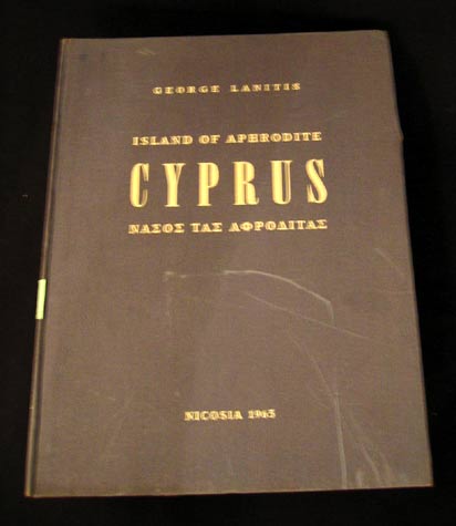 the Eastern Mediterranean where Europe, Africa and Asia meet. British rule ended in 1960 and Cyprus was declared an independent republic. This beautiful book was published in 1965 and shows many images of Cyprus' citizens in their daily life. Title: Cyprus: Island of Aphrodite Author: George Lanitis Binding: Hardbound (photo shows cover as brownish; cover is actually grayish-blue in color) Date Published: Nicosia, 1965, FIRST EDITION Publisher: Aspioti-Elka, Athens, Greece Measurements: approximately 9.25 inches x 12 inches Pages: 128 pages Misc: Foreword by Dilys Powell. Introduction by Andreas Christofides. B&W and color photographs. Price: CyP 24.00 |