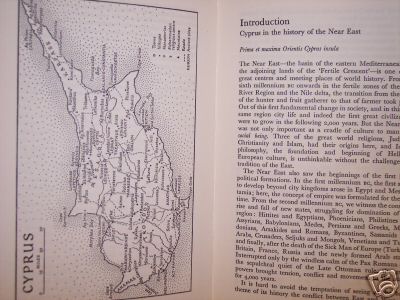 | CYPRUS: FROM EARLIEST TIME TO THE PRESENT DAY. ONE VOLUME IN THE "ANCIENT CITIES AND TEMPLES" SERIES. BY FRANZ GEORG MAIER. TRANSLATED FROM THE GERMAN BY PETER GORGE. London: Elek Books Limited, 1968.A nice copy of this interesting history of the island of Cyprus. Published nearly 40 years ago, this book is now out of print an scarce. From the dust jacket: "This is the first concise and comprehensive history of Cyprus to appear in English. Covering all the essential details, the book gives the reader a useful picture of the many stages of Cyprus' development. Staring with its prehistorical and early cultures, the author who has lived and worked in Cyprus himself, shows how Cyprus has been at the crossroads between East and West throughout history - open to outside influences, but nevertheless retaining a strong personal character of it own. "The book covers each stage in Cypriot history in a separate chapter; early history; as an object of contention between Persians and Greeks; under the Roman empire; as a part of the Byzantine empire; the independent kingdom of the Lusignans, the most romantic and exciting period in the island's history; Venetian rule; Turkish rule; British rule and independence. At the end of the book there are notes on each chapter and a bibliography for further reading so that it serves a dual purpose - as a useful and interesting introduction to Cyprus for the layman, and as a basic text for the student. The author combines a fundamental sympathy for the island's character and problems with a scrupulously fair approach to the many outside interests which have been involved in its varied history. "The Contents of this book are: Preface; Introduction: Cyprus in the history of the Near East; In the Twilight of History: Cyprus and the empires of the ancient world; Hellas and the East: Between the Persian empire and the Polis world; Pax Romana: Cyprus as a Roman province; Byzantium and Islam: Bulwark of Christendom; The Lusignan Kingdom: The autumn of the Crusades in Cyprus; Venetian Interlude: Europe and the Turks; The Long Sleep: Cyprus in the Ottoman empire; Entry into the World of Today: British rule and the Cypriot question; and Epilogue: The Republican Experiment. The Illustrations are: The Royal Palace at Vouni; Statue of Aphrodite of Soli; Silver coin of the Roman Emperor Vespasian; Church of St. Barnabas and St. Hilarion; St. Nicholas Cathedral; Fourteenth century fresco of the Nativity; and Bellapaise Abbey. The Maps are of: Cyprus; Cyprus in the Eastern Mediterranean Area; The Persian Empire at the Time of the Archamenids and the Greek World during the Persian Wars; Byzantium and Islam; The Mediterranean and Near East in the twelfth and thirteenth centuries; and The Growth of the Ottoman Empire." Octavo - sized hardcover book with Dust Jacket; 176 pages of text with maps and photographs. A Very Good+ condition Hardcover book: no writing in text; no torn pages; owner's name "S. Rauwsley 1973" on ffep. Orange cloth binding with gilt lettering; with light wear to edges; corners bumped. Dust Jacket in Very Good condition with wear and edge tears. Not price-clipped (price 30 shillings, with price sticker for 2 pounds. A solid and attractive copy of this interesting book. Price: CyP 20.00 | |