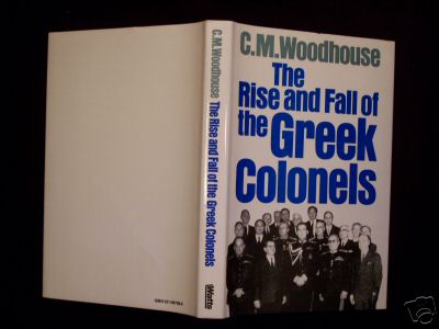 | THE RISE AND FALL OF THE GREEK COLONELS., by C. M. Woodhouse. New York: Franklin Watts, 1985. Stated First American Edition. A very nice copy of this fascinating book on Greek history and politics. Chronicles the final days of Civilian rule in Greece before the Colonels coup, their time in power and their eventual demise. From the dust jacket: "On April 21, 1967 a group of Colonels headed by George Papadopoulos seized power in Greece. Ostensibly their action was justified by the danger of a Communist conspiracy. Yet in spite of many treason trials, not a single person was ever convicted of any action or plot prior to the coup; the Colonels merely revealed themselves as naive megalomaniacs with a self-imposed mission to reform Greece by force. The immediate excuse for toppling the government of the day was the fear that the General Election which was about to be held would lead to grave disorder and even revolution. The tense atmosphere was aggravated by controversies over Cyprus, over the royal family, over the killing of a left-wing Deputy, over allegations of electoral fraud, and much else; but above all by the ingrained habit of conspiracy among Army officers of different political persuasions. Only the final collapse of the dictatorship in 1974, and the return to power of Constantine Karamanlis, restored the hope that Greece could develop into a stable democracy. "C. M. Woodhouse sensitively chronicles the last days of civilian rule, the dissension and confusion which made the coup inevitable and the aftermath of the Colonels' rule and its implications for Greece today. He also analyses international reactions, which were mostly neutral at the official level, in contrast to the widespread hostility of public opinion. His account of betrayal and opportunism illuminates a still too little understanding episode of contemporary European history. "The Contents of this book are: List of Abbreviations; Personalities; Men of Tomorrow 1963-67; Coup d'etat or revolution? April 1967; Resistance and reaction April-December 1967; Onward, Christian Soldiers! 1969; A New Era 1970; The American Commitment 1971; Towards a home port 1971-72; Turn of the Tide January-November 1973; The Students' Revolt November 1973; Down a Steep Place November 1973-July 1974; Yesterday's men 1974-81; notes on sources; and photographs." Octavo - sized hardcover book with Dust Jacket; with 192 pages of text with 8 pages of photographs. A Near Fine condition Hardcover book: no writing in text; no torn pages; no ownership markings. Blue cloth binding with gilt lettering; with only light wear to edges. Dust Jacket in Very Good condition with light wear; only a few edge tears. A solid and attractive copy of this interesting book. Price: CyP 30.00 | |