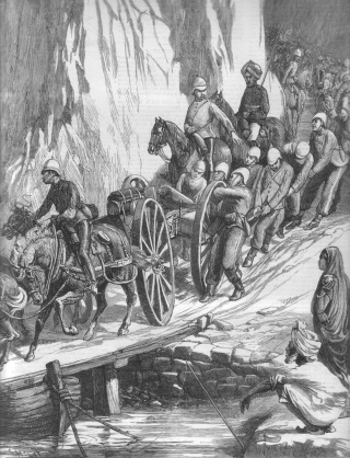 | 10. On the march to the front - Field artillery crossing the Indus by a bridge of boats at Khooshiahgurh. 1878. Size: 22.5 x30 cms. Price: $ 20.00 |