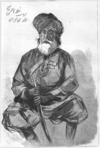 | 14. Afghanistan. Sirdar Bahadur Nawab Gholam Hussein Khan, C.S.I, " Alizae" Cureton's Mooltanee Cavalry, the British envoy to Shere Ali, who has just returned from Cabul. 1878. Size: 15x22 cms. Price: $ 12.00 |