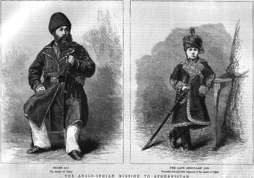 | 22. The Anglo - Indian Mission to Afghanistan. Shere Ali, The Ameer of Cabul on the left and The late Abdullah Jan, favourite son and heir apparent of the Ameer of Cabul on the right. 1878. Size: 22.5 x 15 cms. Price: $ 12.00 |