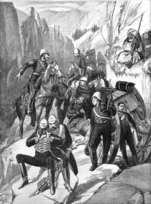 | 3. The Afghan War - Waiting for the elephants. 1878. Size: 22.5x 29.5 cms. Wide margins. ( Image is cut on left and right side by about 2 cms. to fit my scanner ) Price: $ 20.00 |