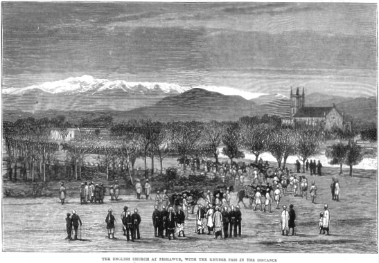 | 39. The English Church at Peshawur, with the Khyber Pass in the distance. 1878. Size: 22.5 x15 cms. Price: $ 12.00 |