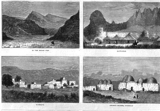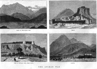 | 44. The Afghan War. Eight views. 1. In the Bolan Pass, 2. Kandahar, 3 Gundava, 4. Afghan houses,Goondan, 5. Head of the Bolan Pass, 6. Kelat, 7. Fort of Kullan Goti, near Tatta, 8. Quetta. 1878. Size: 22.5x30 cms. Price: $ 20.00 |