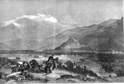 | 9. Afghanistan Illustrated - Cabul from the Be-Maroo Hill with the British Cantonments ( 1839-1849 ). 1878. Size: 30x22.5 cms. Price: $ 20.00 |