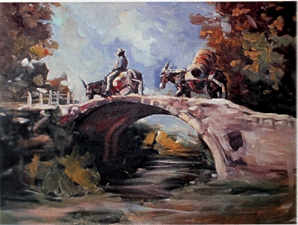 10. Crossing the old stone bridge.  80 x 70 cms.   Price: CyP: 225.00