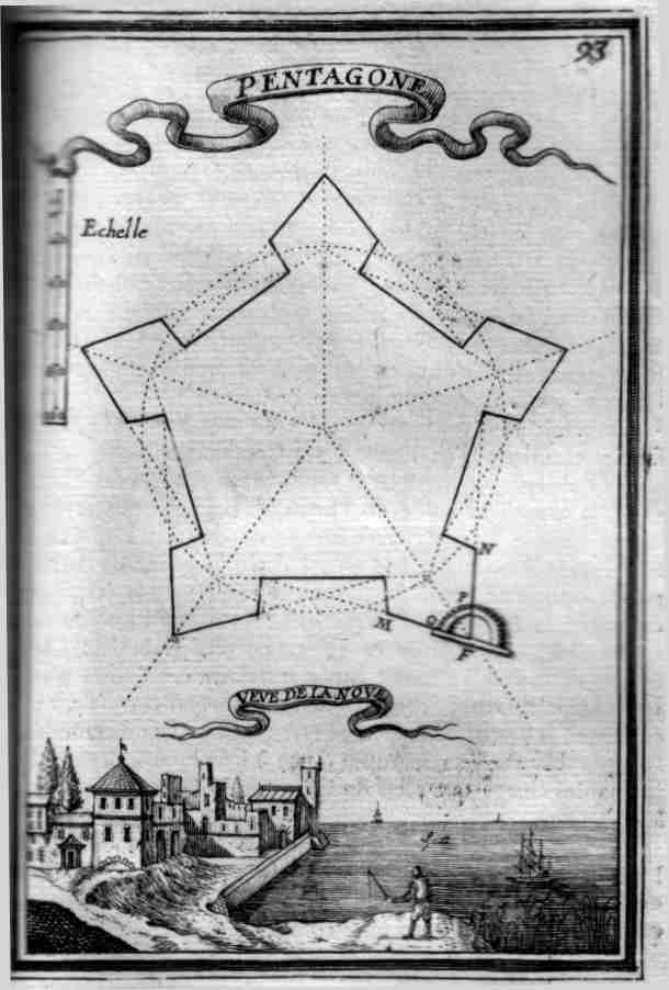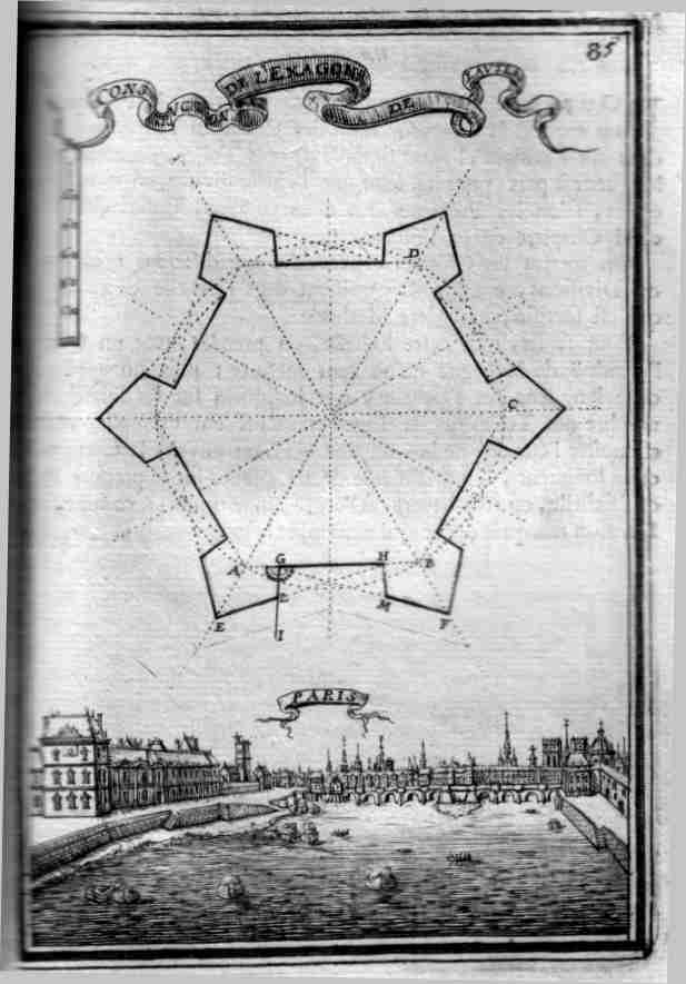 | De la construction de l'hexagone , ou figure des six cotez, selon les regles de l'autheur. About the construction of the hexagone, or six sided place, according to the author's rules. PARIS. Price: $ 60.00 | Methode de mesurer les longuers des lignes qui forment un plan. The method of measuring the length of the lines forming a plan. Archanbau. Price: $ 40.00 |