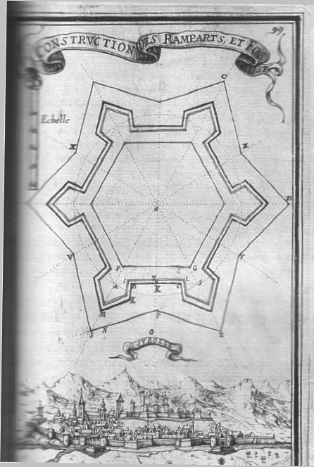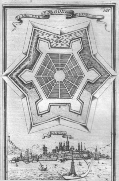 | Construction des places d'armes, rues & maisons des places regulieres. The construction of the defensive grounds of streets and houses of regular places. La Rochelle ( in Charente -Maritime ) Price: $ 40.00 | Plan d'une figure reguliere acheve selon les regles precedentes, avec la maniere de representer le fosse sec ou plein d'eau. The plan of a regular figure executed according to the above rules, showing the method of representation of the moat when dry or when filled with water. BARCELONA. Price: $ 60.00 |