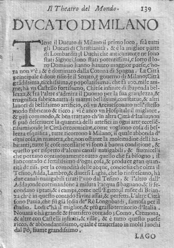 | Ducatus Mediolanensis Finitimarum que Regionis. A map of the Lombardy region of Italy with Milan in the center of the map. North is placed on the right side. Switzerland, Lugano and Lucern in the north, Tuscany and Cremona in the east, Monaco and the Ligurian Sea coast in the south and France and Turino in the west. Price: $ 150.00 |