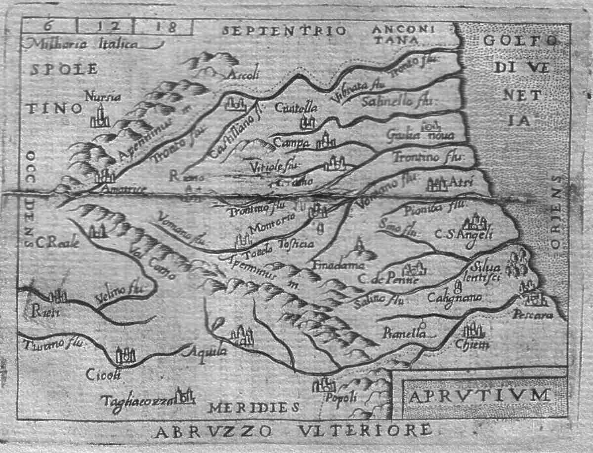 A map of the province of Abruzzi in central Italy with Pescara on the Adriatic coast.