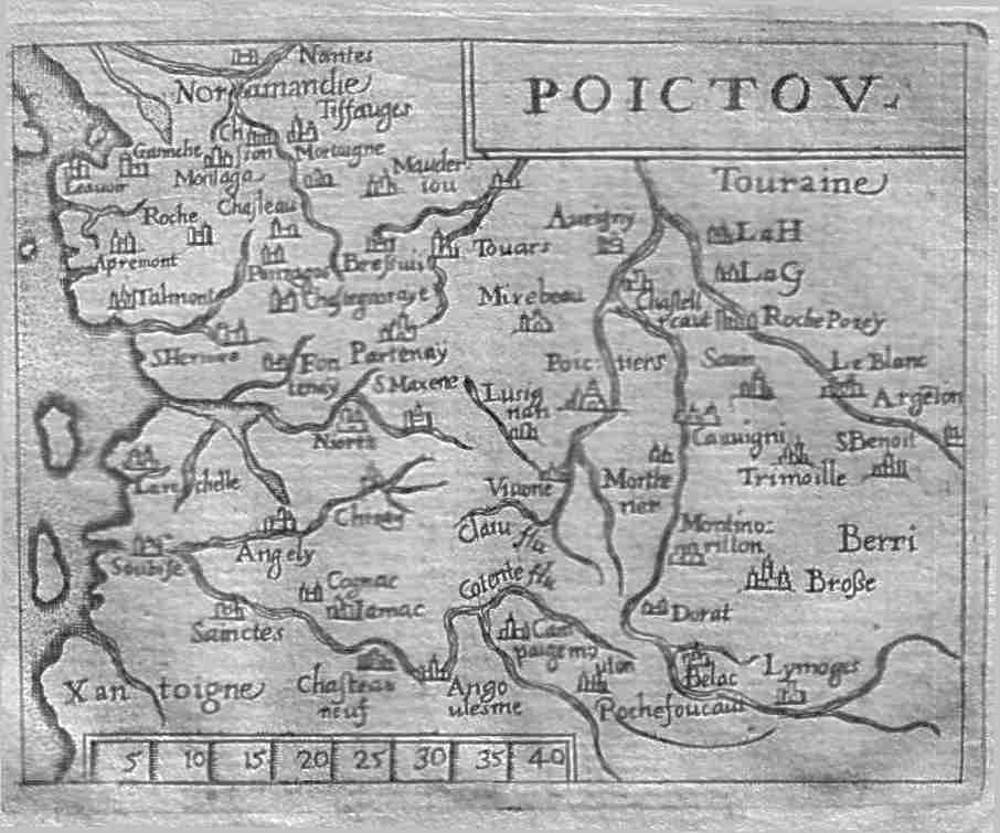 A map of the western region of Poitou-Charentes on the Atlantic coast with La Rochelle, Royan and the islands of Oléron, Aix and Ré.