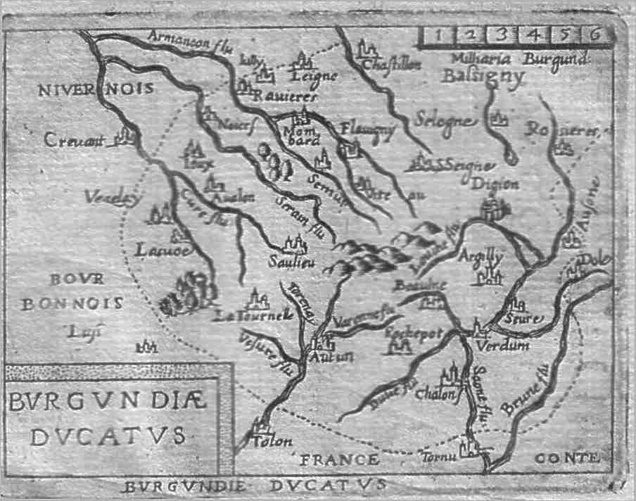 A map of the province of Cote d'Or in the Burgandy region of eastern France. The map centers on the city of Dijon with Semur on the Armancon and
