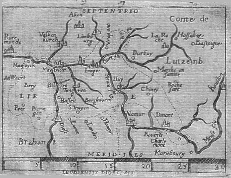 | Leodiensis Dioecesis. A map of the province of Liege in Belgium with Luxemburg in the east, the province of Namur in the south and the Brabant in the south west. The Dutch city of Maastricht should be in the north of the city of Liege rather than in the west. Price: $ 95.00 |