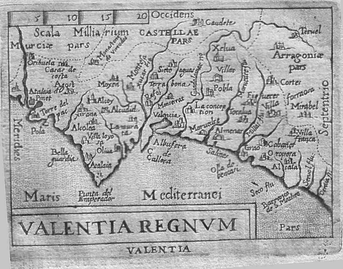 | Valentia Regnum. A regional map of Spanish Valencia with the north placed on the right side. The Castilian Mountains in the west, the region of Aragon in the north, the Valencian coast in the east and Alicante and the region of Murcia in the south. Price: $ 95.00 |