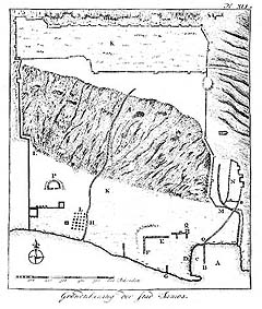 Grondtekening van een gebouw X, en van den Junotempel A, beiden in de stad Samos.18 x 16 cms. Pl. XLI b