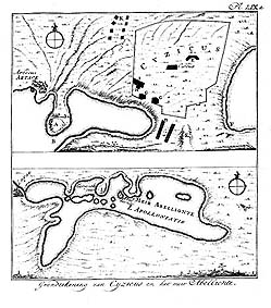 Grondetekening van Cyzicus en het meir Abellionte. 18 x 19.5 cms. Pl. LIX a.