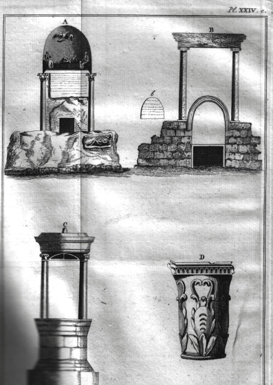 Grafteckens op der berg Sheik Baraket en te Diana. Een kapiteel, te Salamis op het eiland Cyprus geronden. 19.5 x 16 cms. Pl.XXIV. c ( Plate found in the Antiochia section of the second volume)