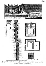| Gezigt, Platte-Grond en Doorsneede van den zogenoemden Josephs-Put in het Kasteel te Kairo. 13 X21 cms. Pl. XV. |