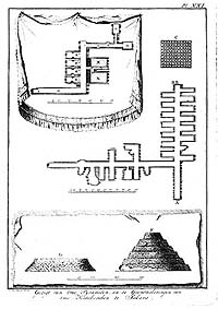 | Gezigt van twee Pyramiden, en de Grondteekeningen van twee Katakomben te Sakara.. 14.5 X 20 cms. Pl. XXI |