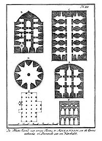 | De Platte-Grond van eenige torens te Alexandrie: en de Grondteekening en Doorsnede van een Waterbak. 15.5 x 21.5 cms. Pl. III. |