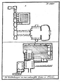 De Grondteekeningen van twee onderaardsche Grotten te Thebe. 16 x 22 cms. Pl. XXXIV.