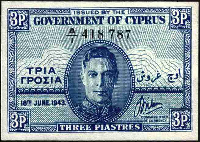 | KGVI. 1943 A/1 418787.Three piastres in an about uncirculated condition. Price: $ 160.00 | |