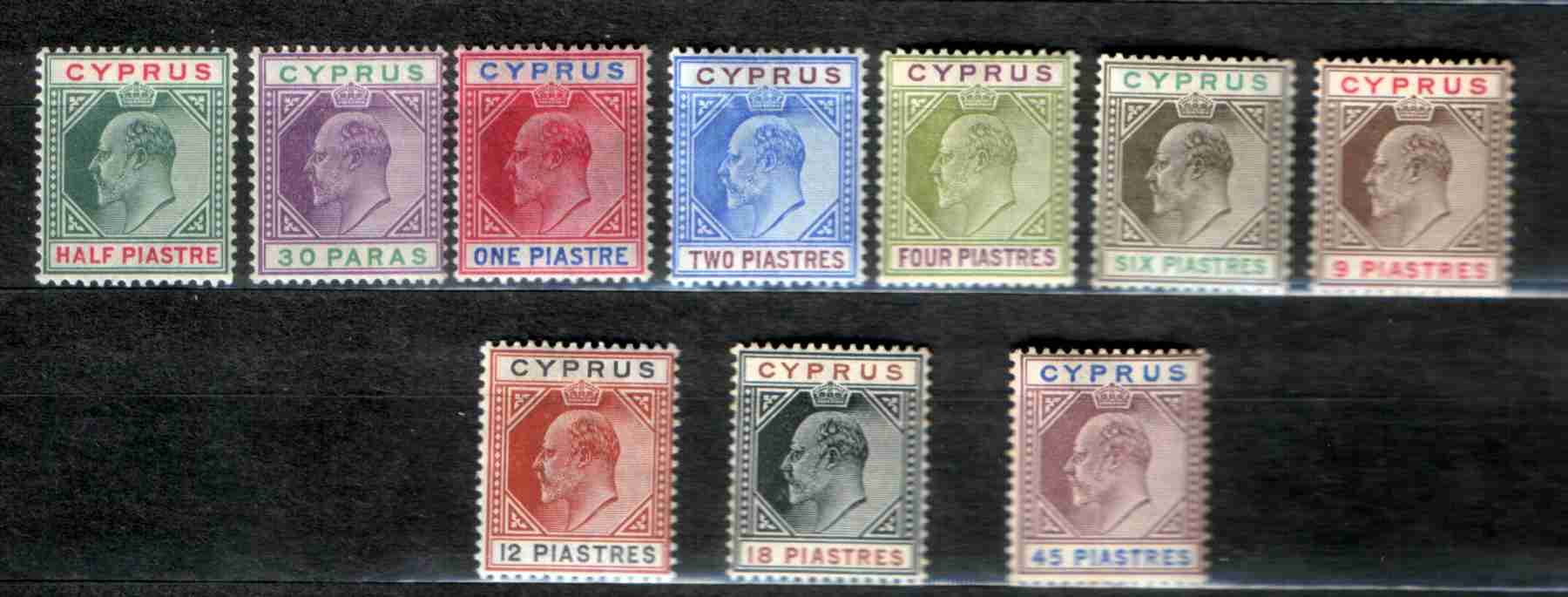 | 1902-04. Watermark Crown CA. 1/2 - 45 Pi. 10 values, mounted mint. Price: $ 420.00 |