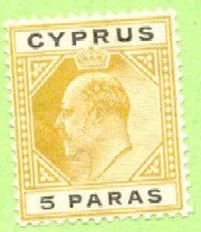 1908 5 paras , bistre and black. Broken top left triangle. S.G. # 60a. Lightly hinged. Price: $ 58.00 |