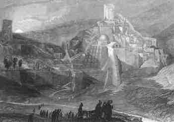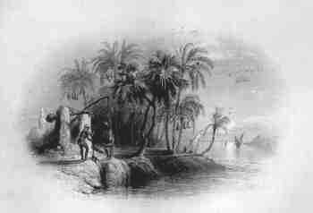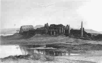 | THE CONVENT OF SANTA SABA - ENGEDI Art: J.M.W. Turner Engr: J. B. Allen 1836 Size: 14x10 cms. Ref: # EG003 Price: $ 20.00 | PLAIN OF THEBES Art: W.H. Bartlett Engr: unknown c1847 Size: 14x9 cms. (oval) Ref: # EG004 Price: $ 16.00 |