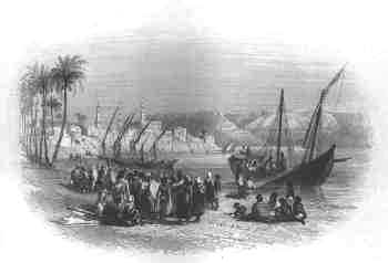 | TOMBS OF THE MEMLOOK SULTANS Art: W.H. Bartlett Engr: unknown c1847 Size: 14x7 cms. (oval) Ref: # EG007 Price: $ 16.00 | A SLAVE BOAT AT GIRGEH Art: W.H. Bartlett Engr: unknown c1847 Size: 13x8 cms. (oval) Ref: # EG008 Price: $ 16.00 |