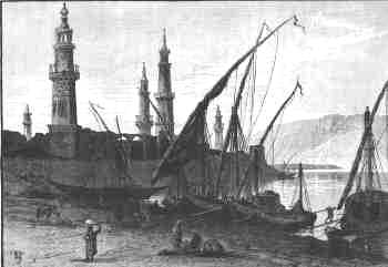| TEMPLE OF EDFU Art: J. Woodward Woodcut engraving* 1880 Size: 24x16 cms. Ref: #EG011 Price: $ 12.00 | GIRGHEH, FROM THE MOORING PLACE Art: J. Woodward Woodcut engraving* 1880 Size: 23x16 cms. Ref: # EG012 Price: $ 12.00 |