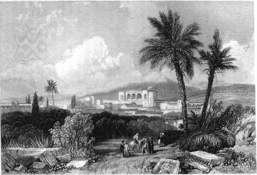 | 105. Kittim, - Cyprus. View from Larneca. 1836. 15x10 cms. Steel engraving without text on verso drawn by J. D. Harding from a sketch by Las Casas and engraved by W. Finden. " Citium was famous as the birth place of Apollonius, one of the most distinguished disciples of Hippocrates; and also of Zeno who, originally a Phoenician merchant, betook himself to the study of philosophy and became the founder of the Stoics. At the siege of Citium, Cimon, the son of Miltiades, received the wound of which he died. Plutarch informs us, that it was with a sword presented to him by the king of Citium that Alexander conducted his war against Darius to a victorious termination...... Our view of Larneca is taken from the house of the Venetian consul. We have another view of this beautiful island in the Levant (n.b. my page 99) which is also memorable as having been visited by the Apostle Paul, in company with Barnabas who was a Cypriote by birth, and is said to have suffered martyrdom in his native island" Rev. J. Wilson 1838. Price: CyP 55.00 |