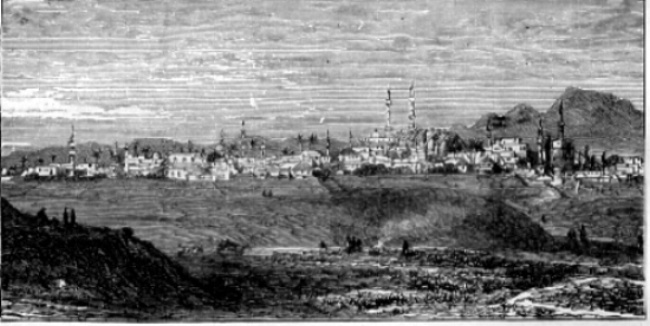 | Nicosia. 14.5 x 7.5 cms. c1880. In text woodcut engraving with further text on verso. Matted ready for framing. Price: CyP 25.00 |