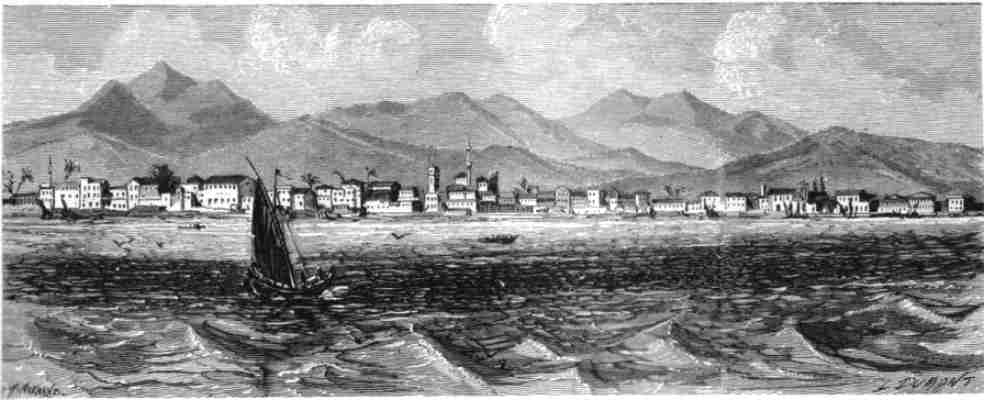 | 12. Larnaca sketched from the Sea. 1878. 11x9 cms. "The town of Larnaca which stretches along the water's edge presents the usual Oriental features of a Levantine seaport, except that it is more sleepy and quiet than most of those towns. The mosques of the town are insignificant and, except for the presence of half a dozen minarets, one would almost suppose the population of Larnaca to be Christian, as the Greek churches are most conspicuous with their bell turrets.." ILN, 1878. Price: CyP 35.00 |