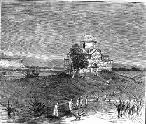 | 30. Church of St. Demetriano. 1878. 11x9 cms. This engraving sketched in July of 1878, illustrates the Greek Orthodox church of St. Demetriano. The exact location of this fine though tiny example of Byzantine church architecture is not known. A church dedicated to the same saint stands today in Cythrea. Price: CyP 20.00 |