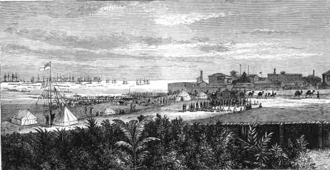 | 38. Landing place and piers at Larnaca, from the House of the Duke of Edinburgh. 1878. 24x12 cms. " The Channel Squadron has not been idle since the arrival in preparing for the occupation of this place by the troops. The Duke and a large number of sailors have formed a naval camp at the landing place north of the town and have erected five piers and landing places. The Royal Prince, ever active and zealous, but looking as hard as nails, personally superintends the landing and clearing of the boats and vessels, as they arrive at the beach..." ILN Aug. 1878. Price: CyP 35.00 |