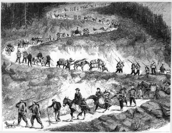 | 93. Marching from mount Troodos into winter quarters. 1880. 23x17 cms. When the sunny days of summer were over and the first rains of autumn came, the summer encampment of the British Government of Cyprus ended and the administrators together with their staff and a convoy of donkeys and mules started their troublesome and often adventurous descent into the winter quarters in Nicosia. Price: CyP 25.00 |