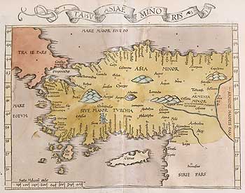 | Tabv Asiae Minoris. 1522/25 Ptolemy / Laurent Fries Map of Asia Minor with Cyprus in full original colour. A very few small wormholes, otherwise in very fine condition. The Carpas Peninsula is pointing westwards. Size 38 x26 cms. This very rare map of Asia Minor and Cyprus is unusual in that it is in full original hand colour. The map is from the 1525 edition of Laurent Fries’ Clavdii Ptolemaei Geographicae. Fries is perhaps best known for his re-workings of Martin Waldseemuller’s maps of America and the World. His important folio edition of Ptolemy first appeared in 1522 and contained both modern and Ptolemaic maps of all parts of the world. My earliest map showing Cyprus in stock. Price: CyP. 1450.00 |