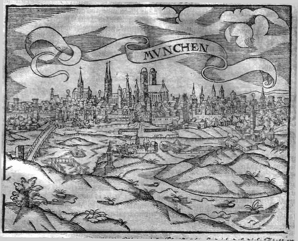 | Munchen. 15.4x12.2 cms. View set in a page of text of the German city of Munchen, Bayern, located on the Isar river near the edge of the Alps. Ref # MGCV29 Price: $ 80.00 |