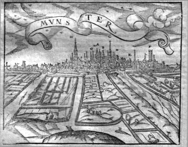 | Munster. Munster in Westphalen. 15.4x12.4 cms. View set in a page of text of the German city of Munster in Nordrhein - Westfalen, located on the Dortmund-Ems-Kanal. Ten name index below view. Ref # MGCV38 Price: $ 80.00 |
