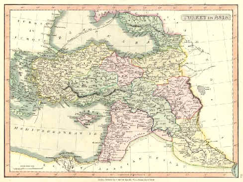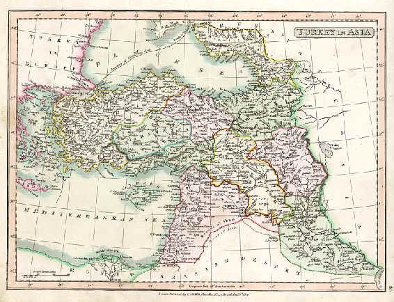 | Turkey in Asia. No engraver given, published by C. Smith in Smith's New General Atlas, London, 1816 (map dated 1808.) Copper engraved map with original outline and wash hand colour. Extremely slightly soiled. Size 35.5 x 26.5 cms. Price: CyP 42.00 |