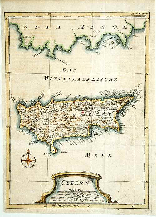fine condition. Rare map of Cyprus and part of the Turkish coast.