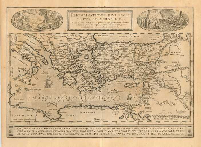 This splendid map depicts the travels of St. Paul