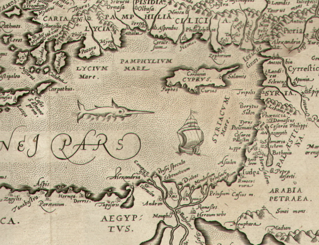 throughout the Eastern Mediterranean. The title cartouche is flanked by