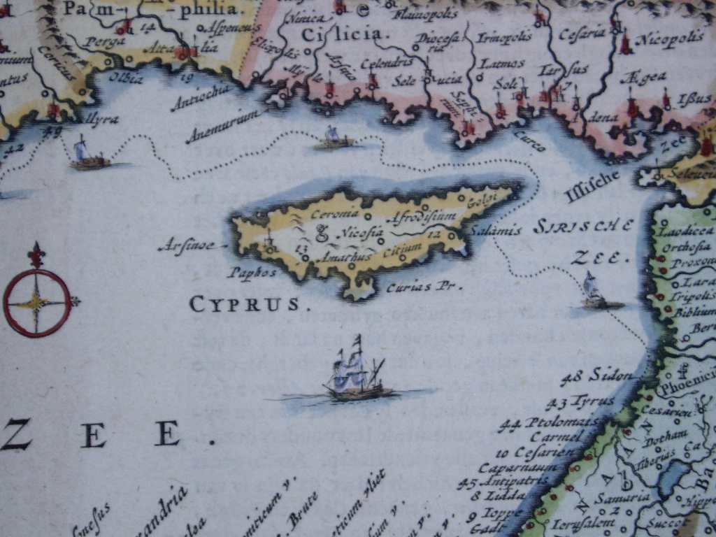 This is an original map from a Dutch bible of 1663.Colourful map of the