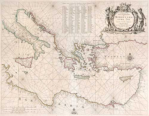 Mediterranean, centered on Greece. The chart is beautifully engraved